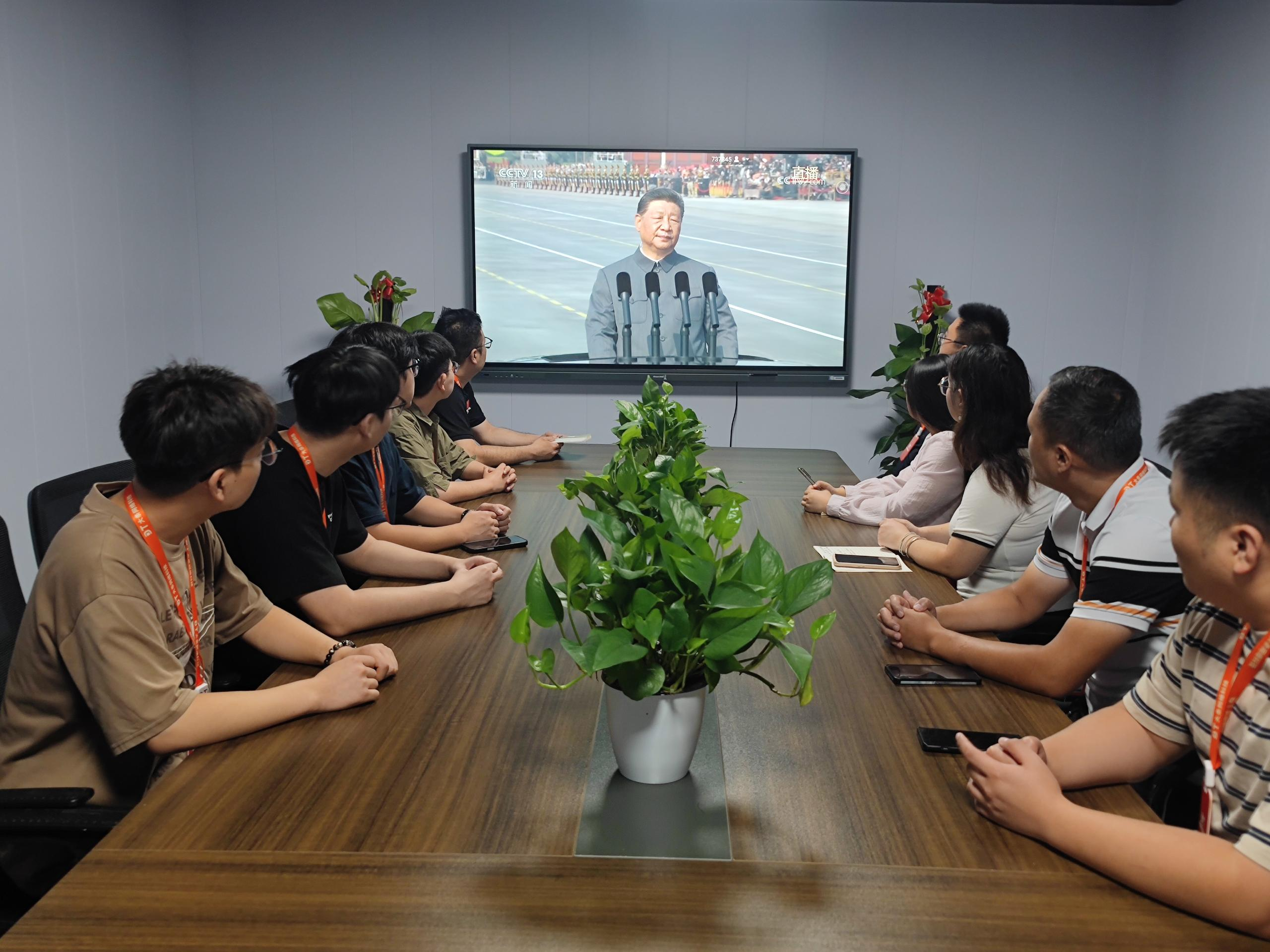 2025年9月3日上午在反法西斯抗战胜利80周年,在这个充满自豪与荣耀的日子里,大条公司组织全体员工观看盛大的阅兵仪式。公司上下沉浸在庄重而热烈的氛围中,共同见证了这一伟大的历史时刻。